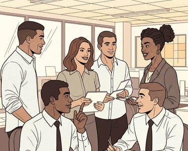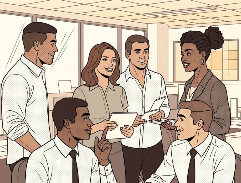 Ele te ajuda a navegar em situações sociais com colegas, chefes e subordinados, além de orientar sobre como participar de eventos corporativos e lidar com desafios como ansiedade social e sobrecarga sensorial.